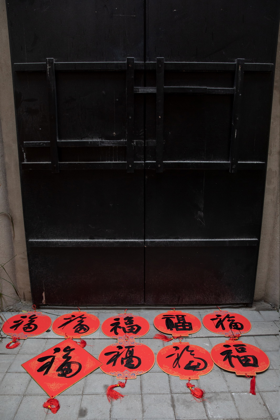 1月26日,刚写就的“福”字晾晒在石库门小院里,准备迎接即将到来的春节。