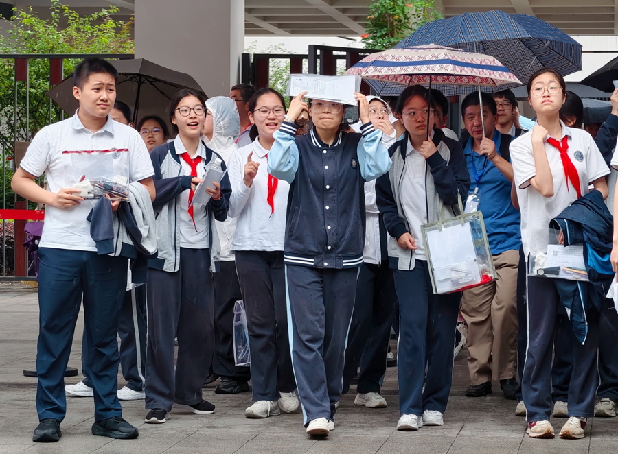 6月15日,中考结束,学生们走出考场后,心情不同、表情各异,呈现考后众生相。