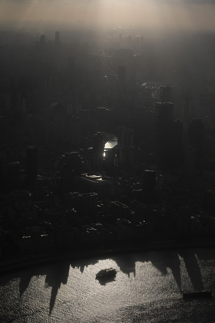 7月23日傍晚,在丁达尔光线里,黄浦江和苏州河反射着一天中最后的阳光,宛若创世纪景象。