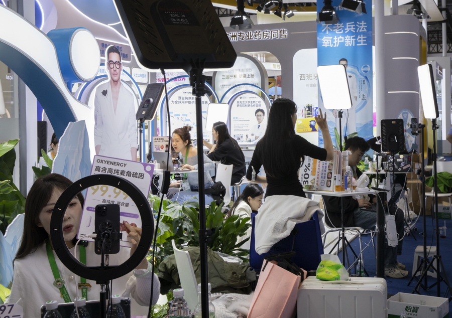 11月10日,第八届进博会现场的直播数量较往届大幅增长。