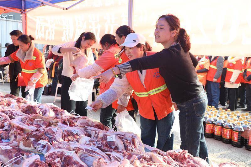 在慰问品发放区,码放整齐的大米、色泽清亮的食用油、带着新鲜肉香的猪肉依次传递到环卫工人手中。大家有序领取,脸上绽放出幸福的笑容,彼此分享着新春的喜悦。