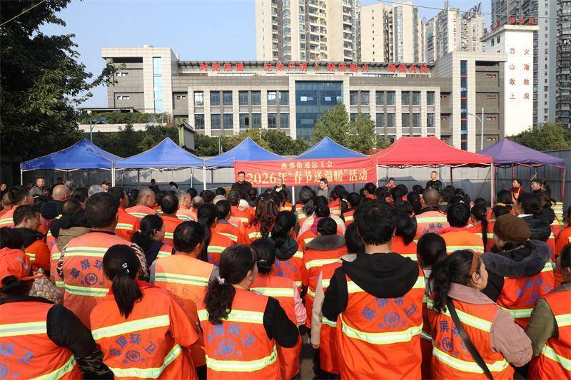 暖阳照耀下的活动现场,橙红色的工装汇成温暖的海洋。西郊街道相关负责人对环卫工人不畏寒暑、日复一日坚守保洁一线,用一把扫帚、一个簸箕守护城市街巷整洁的奉献精神致以崇高敬意。“大家用汗水换来了城市的洁净美丽,是值得尊敬的‘最美劳动者’。”
