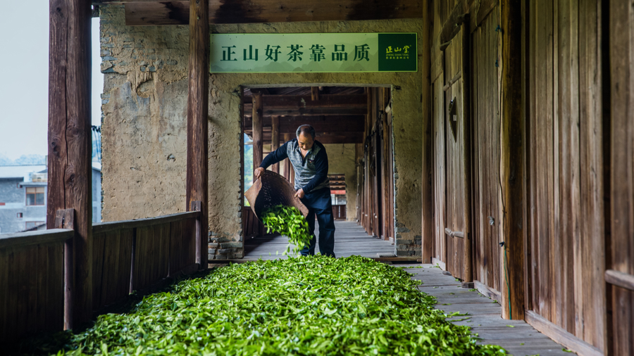 制茶师傅正在制作正山小种红茶(晾青)